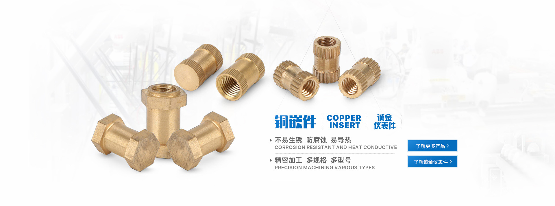 乐清市诚金仪表件有限公司是一家以研制、生产、销售电力仪表为主的现代化企业。公司坐落于浙江乐清柳市镇华东工业区。公司专业生产铜嵌件、接线柱、接线端子、零电排、导电带等铜产品。公司只做有品质的铜嵌件。获得海内外同行的一致认可。