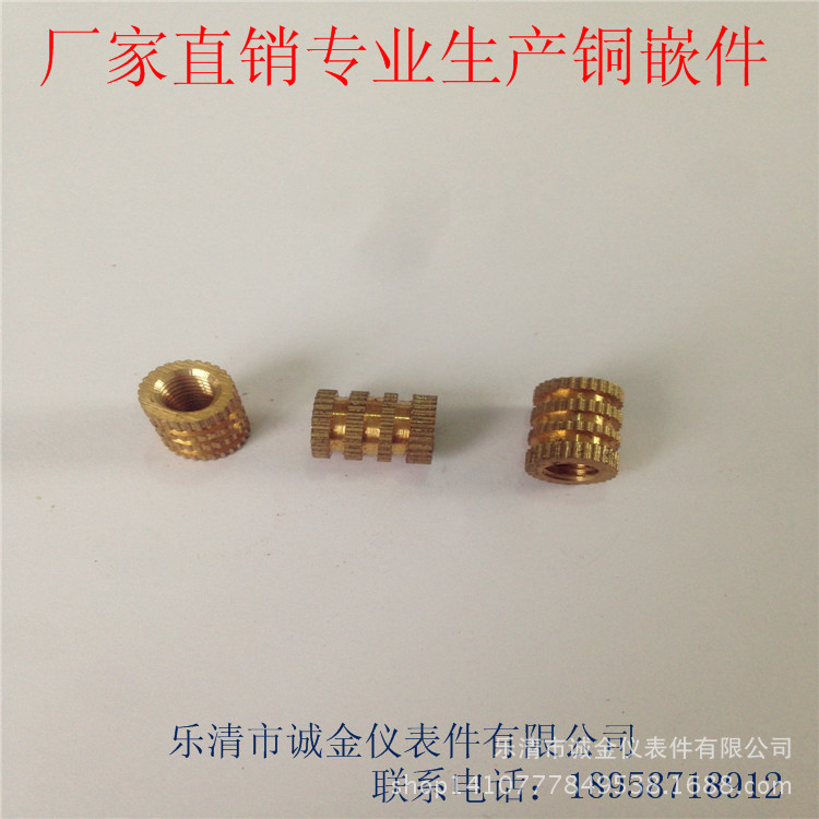 1、电话、旺旺咨询。把你们需要铜嵌件的图纸发给我们,我们会根据你们的要求定制尺寸、精度等。(无图纸我们会根据标准生产)