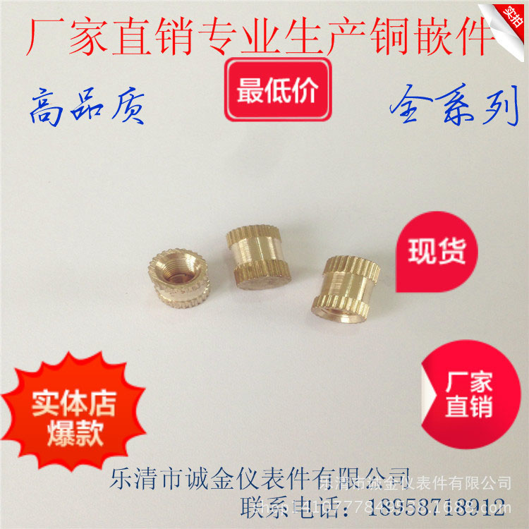 1、电话、旺旺咨询。把你们需要铜嵌件的图纸发给我们,我们会根据你们的要求定制尺寸、精度等。(无图纸我们会根据标准生产)