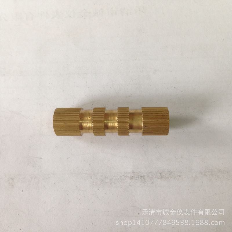 厂家m10×20铜嵌件 铜镶件注塑 滚花铜螺母现货 双通卡件